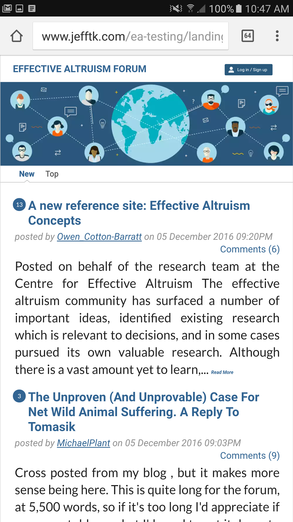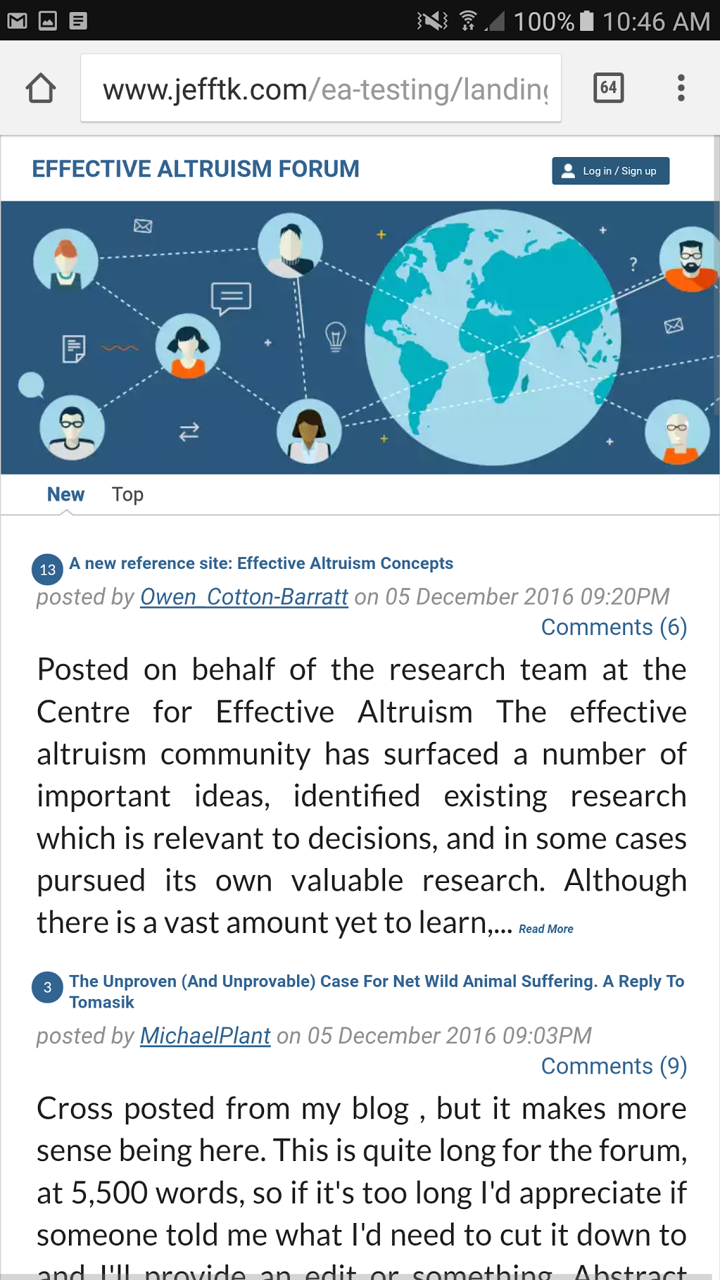 If you haven't recently tried the EA forum on a mobile device, I'd encourage you to test it out. An updated mobile-specific view rolled out yesterday, and if it's causing any display issues for people I can figure out how to fix it.