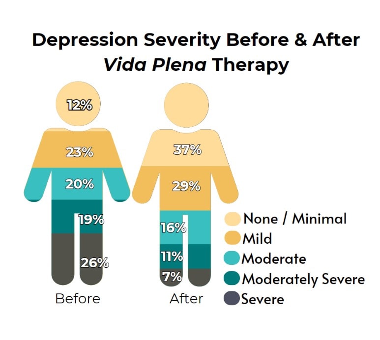 Our therapy doesn’t just assess depression but also helps provide tools for managing anxiety and improving wellbeing including repairing and maintaining healthy interpersonal relationships. Our 2023 results suggest that Vida Plena therapy helps with both anxiety and wellbeing as both assessments showed clinical improvement. Most importantly, participants having gone through our programming, report having regained hope (86%), having improved resilience (85%), and better overall functioning (85%). Our full analysis was disseminated in our 2023 annual report.