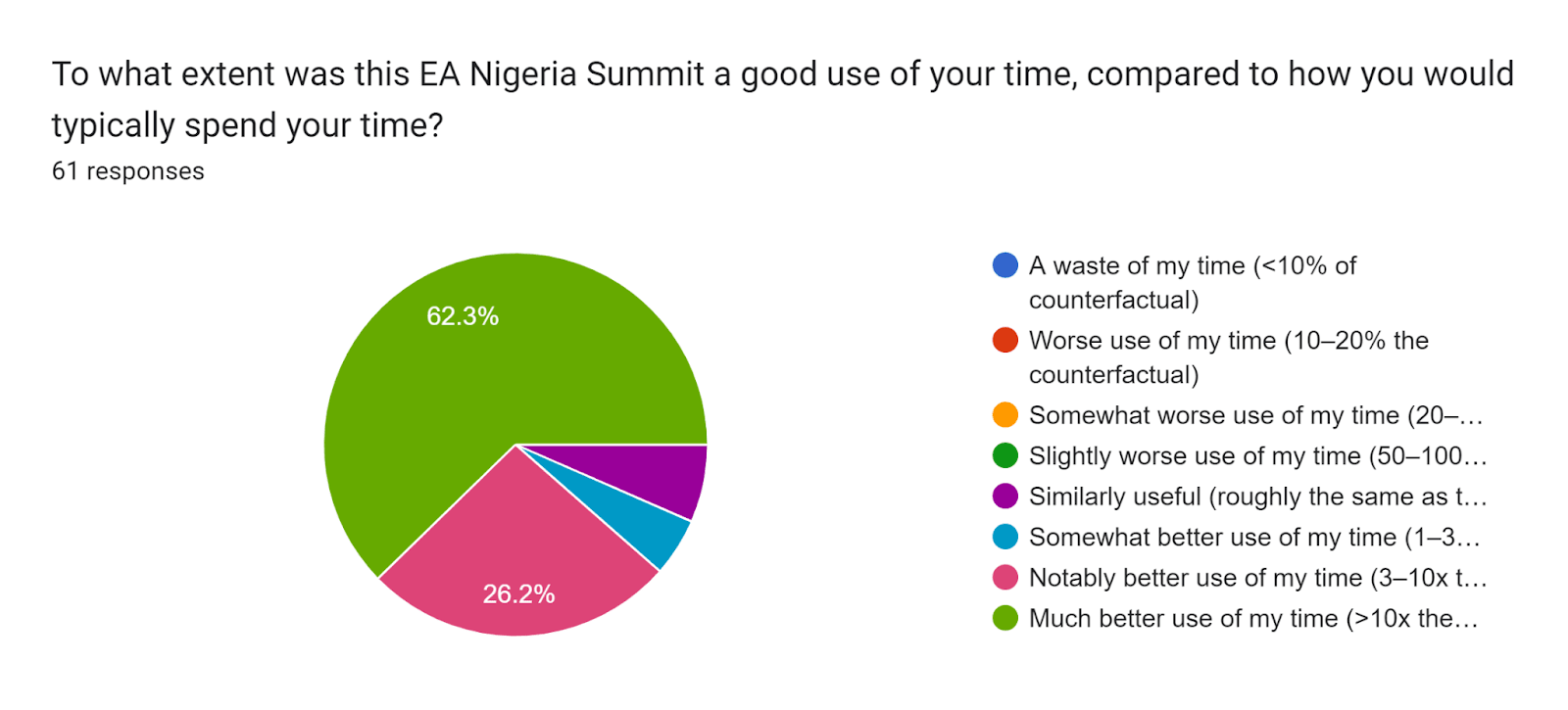 We are so excited that this summit has happened, more specifically given it’s the first EA-aligned conference in Nigeria. Organising the summit has enabled us to test the possibility, which relatively seems positive for us despite a few challenges. It implied to us that: