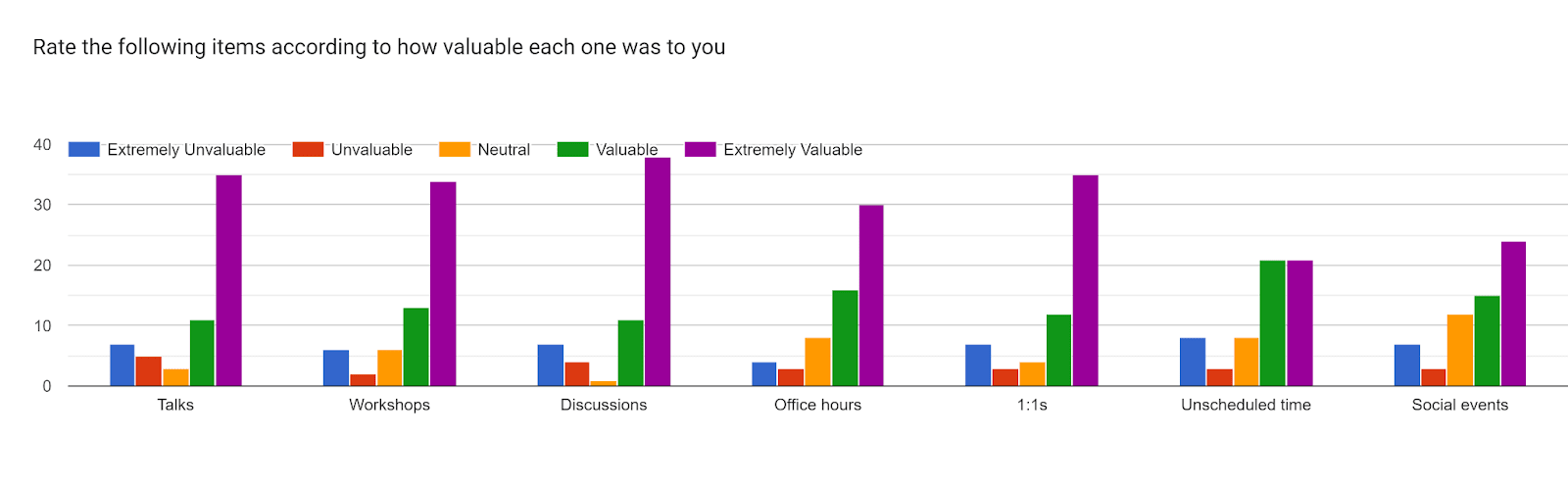 A lot of attendees found the sessions valuable and invaluable, with valuable outweighing invaluable all across, the discussion sessions, one-on-one, talks, were the highlight. The discussions and one-on-one gave attendees the chance to dive into more personalized discussions and ask specific questions, which left them with new connections and ideas that they were excited to follow up on. The informal moments—like during breaks, lunch, and social— turned out to also be positive and valuable.
