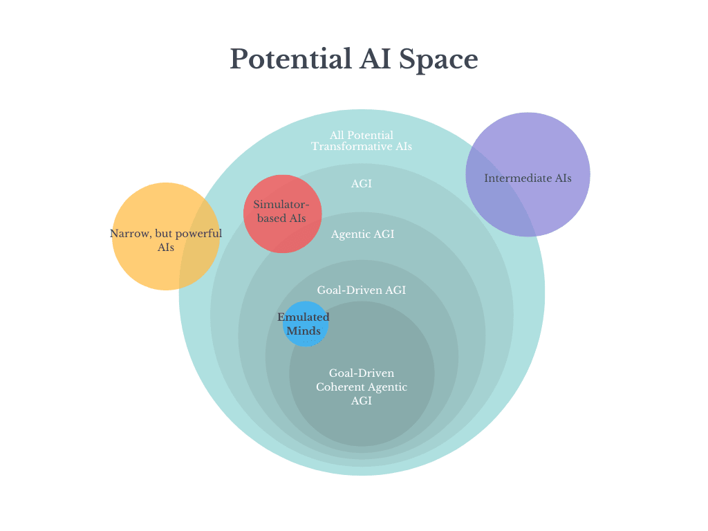 All of this doesn’t downplay the risk of AI. It actually makes the uncertainty even higher. I am likely wrong about a number of these points, but am uncertain about which points I am wrong about. I worry that AI Safety might be developing models that are too narrow, and that new researchers will simply build on top of them, without considering that they might be wrong. What I hope to see is more researchers tackling AI not just from different angles, but at different parts of the “potential AI space”.