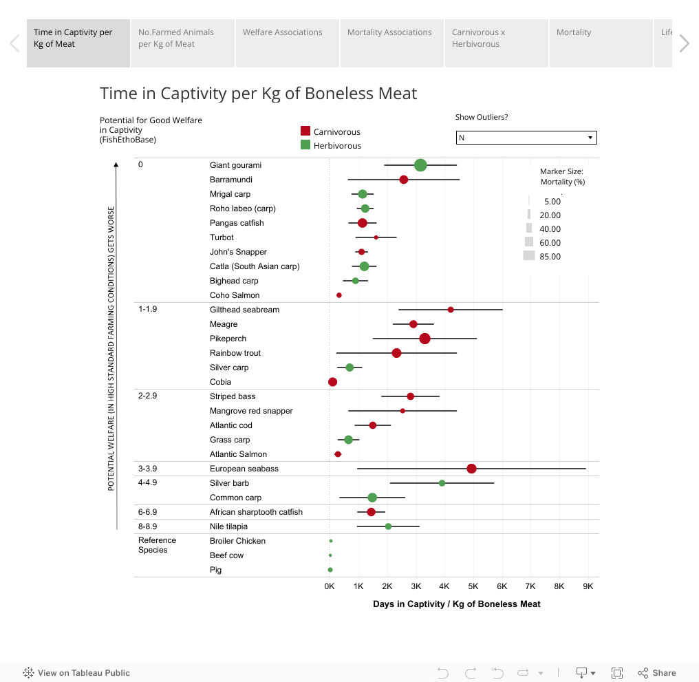 That being said, my impressions, perhaps wrong, is that broilers have really bad lives throughout, experiencing substantial disabling pain. I'm less sure about how bad the lives of farmed fish are.