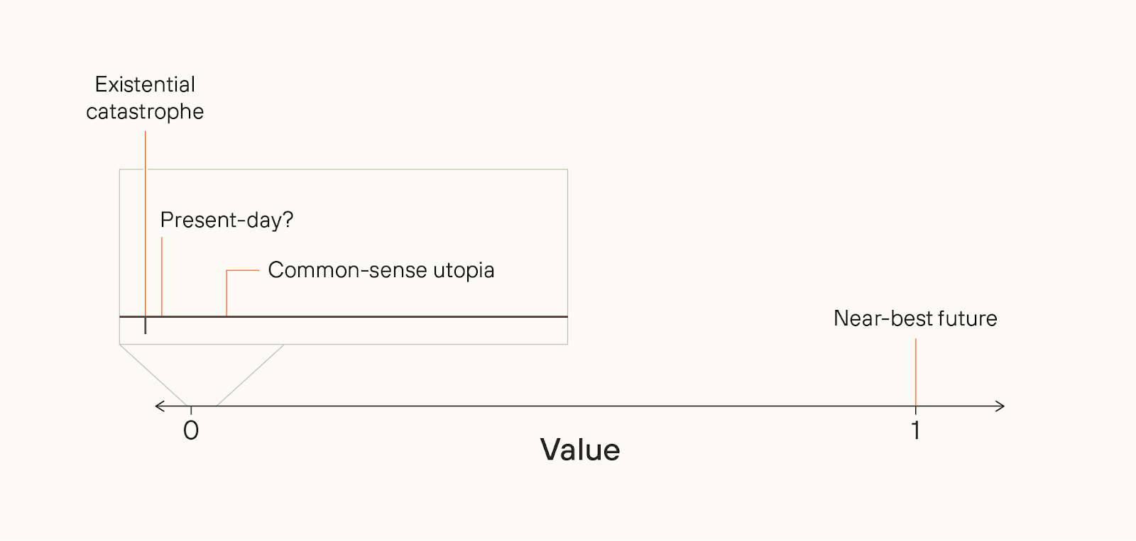 In contrast, what’s the value of Flourishing? I.e. if near-term extinction is 0, what % of the value of a best feasible future should we expect to achieve? In the next two essays that follow, Fin Moorhouse and I argue that it’s low.