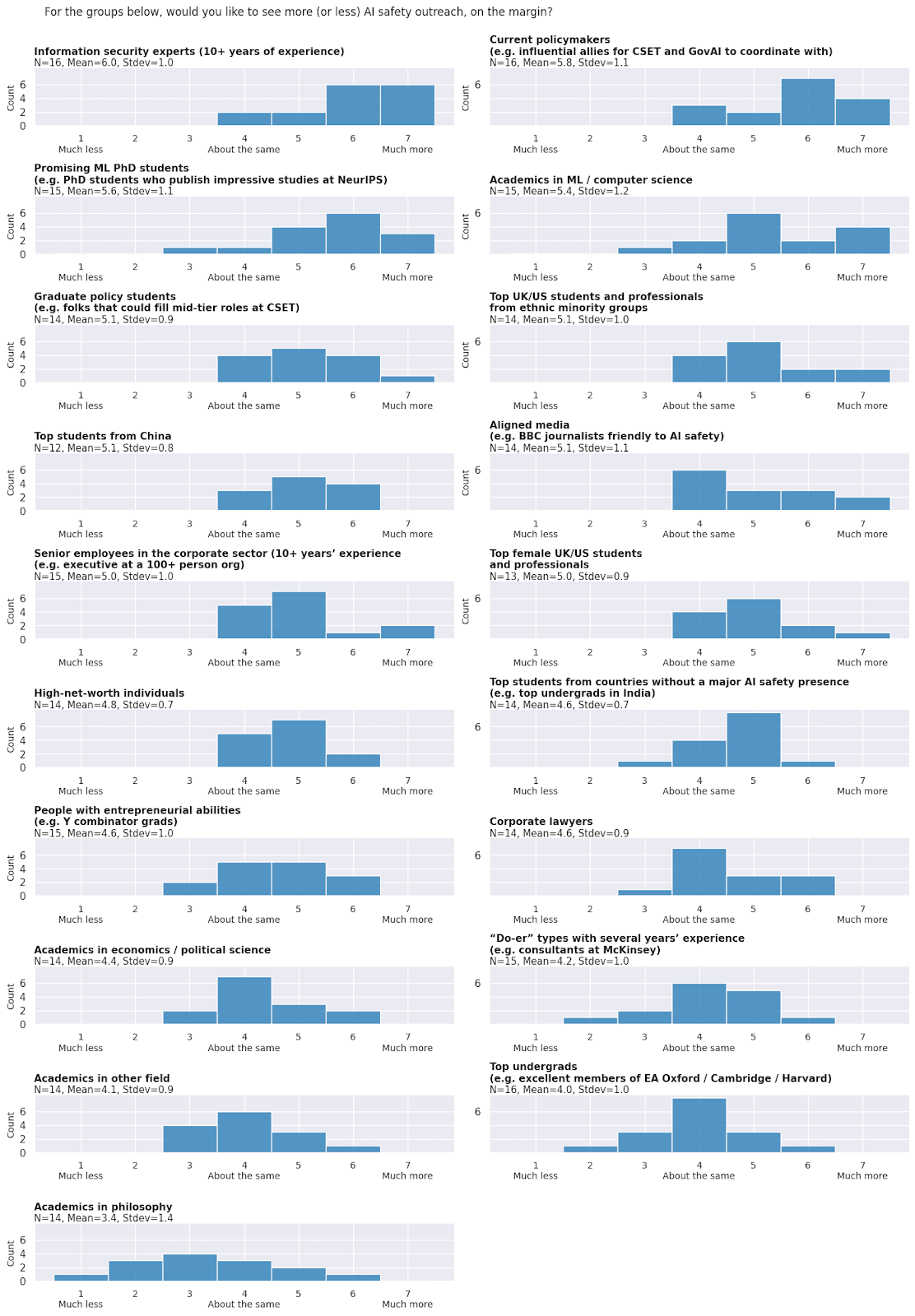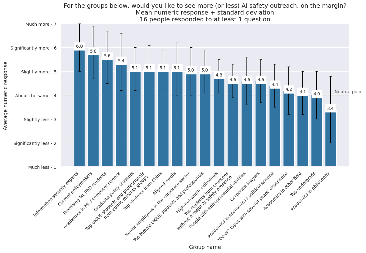 For the groups below, would you like to see more (or less) AI safety outreach, on the margin?[1]