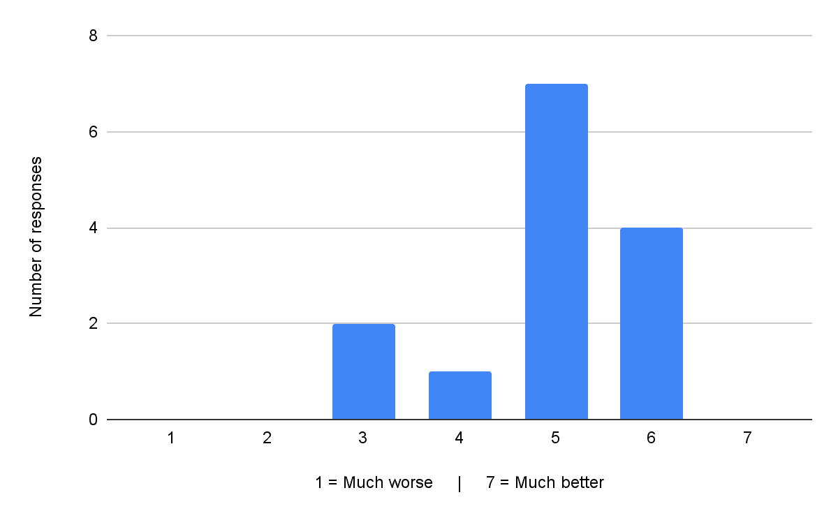 Respondents indicated that EA has a broadly positive influence on AIS, but mentioned several ways in which it can have a negative influence. ~5 respondents said that, for most people, engaging in a sustained way with EA thinking and the EA community made their AIS work better via e.g. good epistemics, taking risks seriously and sensible prioritization. The ways EA can have a negative influence included bad associations (e.g. cultiness) and directing promising researchers to abstract or unproductive work.