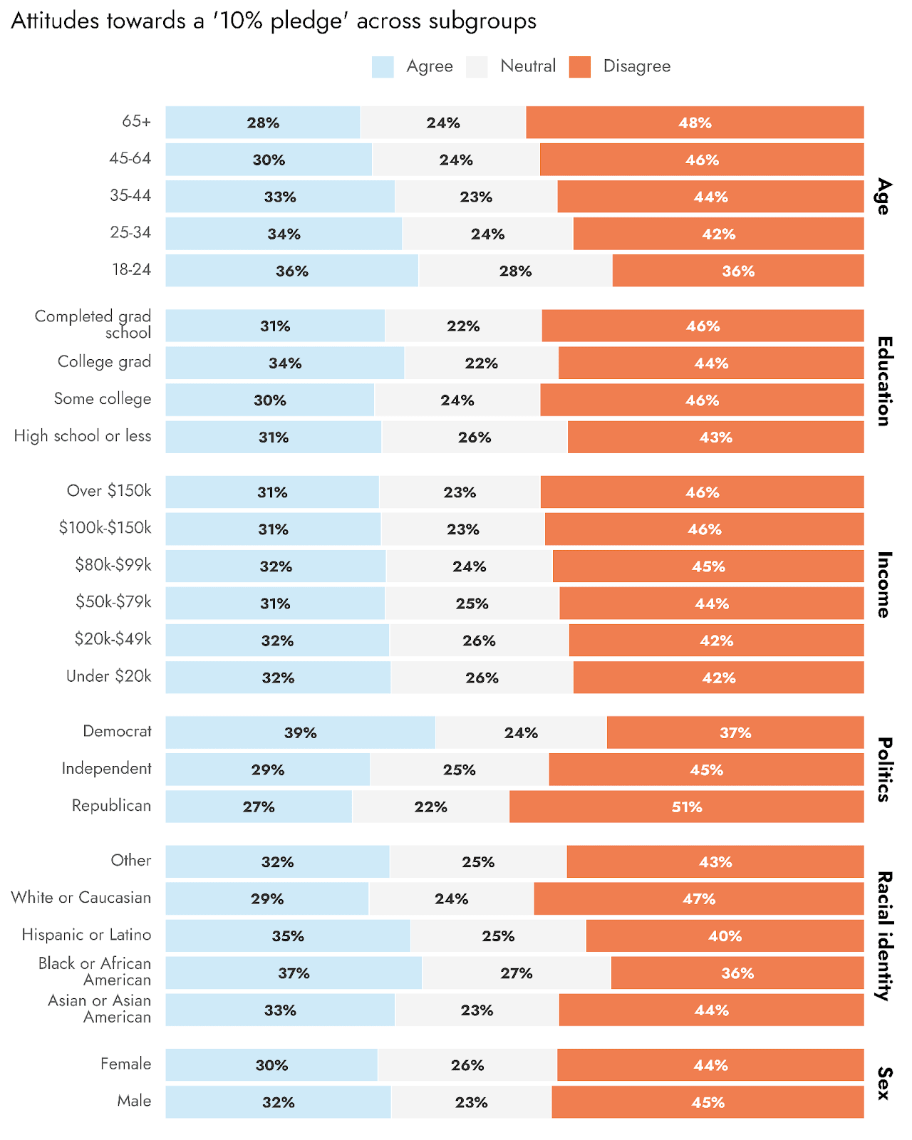 Attitudes towards a ‘10% pledge’ for most people in the US