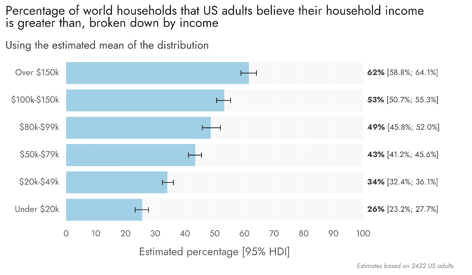 - We estimate that US adults likely underestimate their income relative to the income of the rest of the world