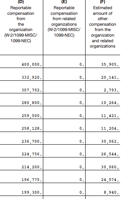 To put some numbers on this, here is the data from GiveWell's 990 in 2023 -- these do appear to be the highest-paid eleven employees (which is not always the case on the 990)