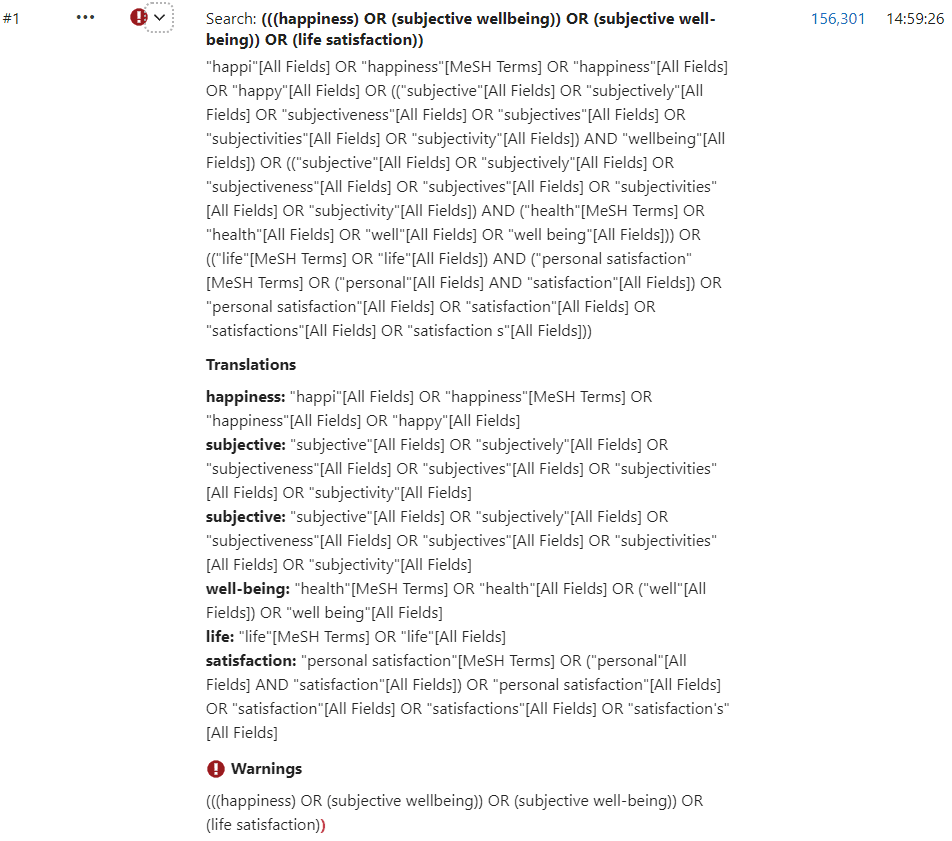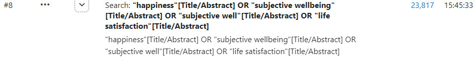 With quotations to limit results to those specific terms (I'm not sure if that was your intent) and using Title/Abstract (PubMed also doesn't really like hyphens as you see above but I used "subjective well" to try and work around this) you get more like 20-30k results. You can use MeSH terms (key words instead), other variations, etc to push it up or down (I tried a few variations to work with 'well-being' hence this being #8). And as you rightly say, you can always add more terms to include more papers.