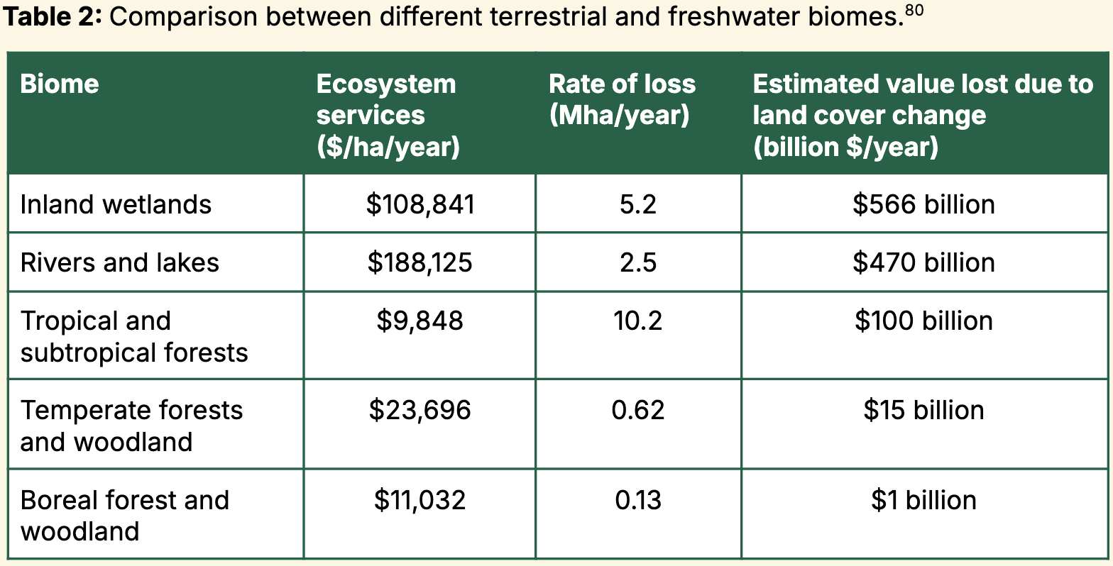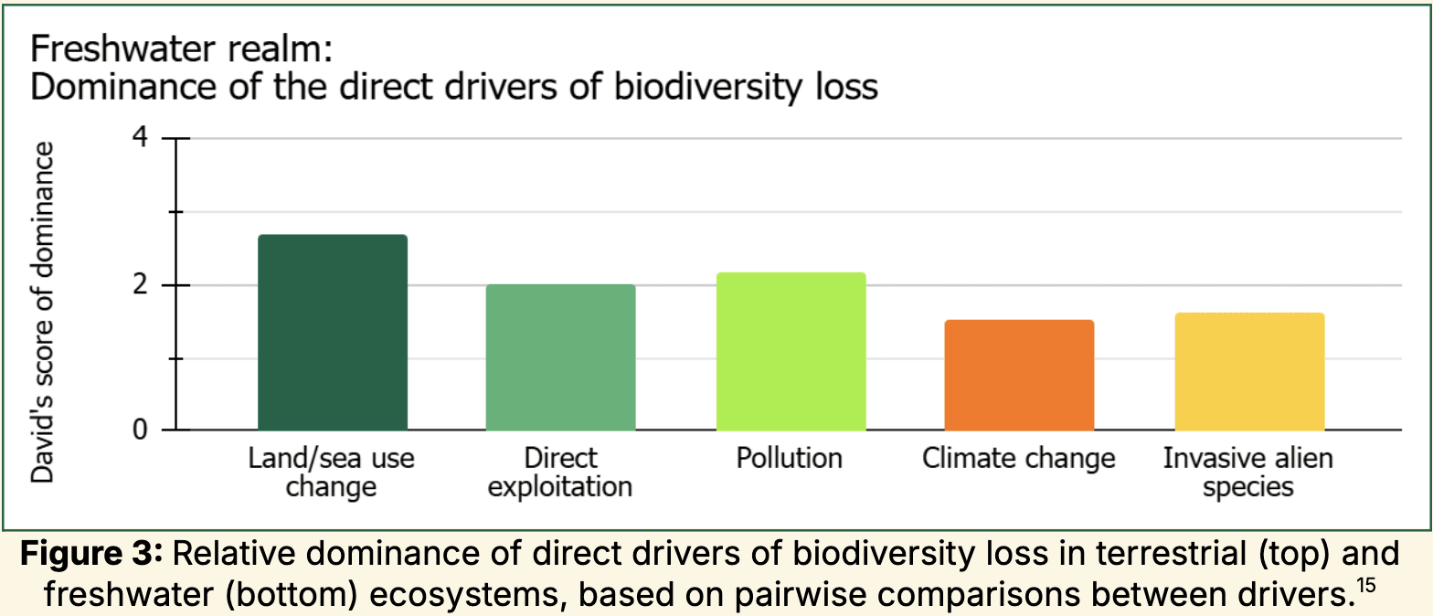 Why not just pick number of species going extinct? My guess is the argument across these scattered quotes from Founders Pledge's guide to ecosystem philanthropy, cited in GG's report: