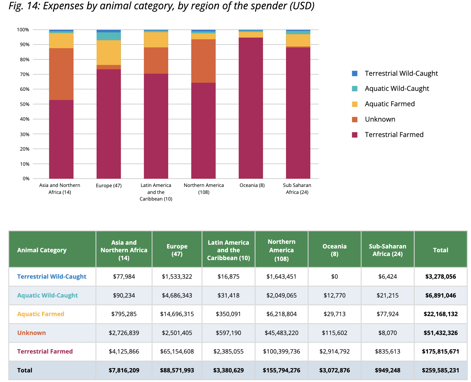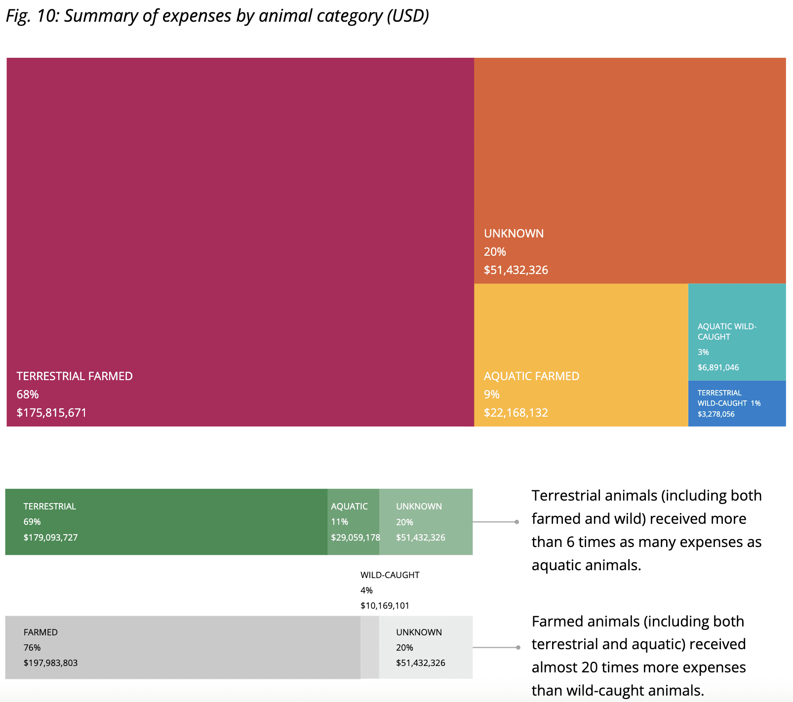 I don't have any good sense of how this Global North-dominated funding potentially skews priorities, but this drill down by animal category may be a start: